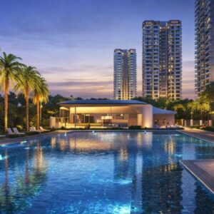 The project offers 48+ lifestyle amenities, including a clubhouse, swimming pool, sports courts, jogging track, landscaped gardens, kids’ play areas, co-working spaces, and wellness zones.
